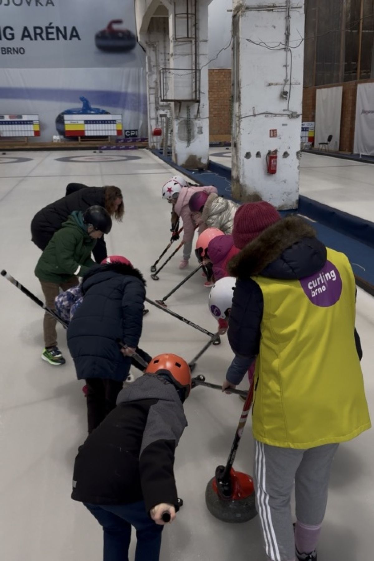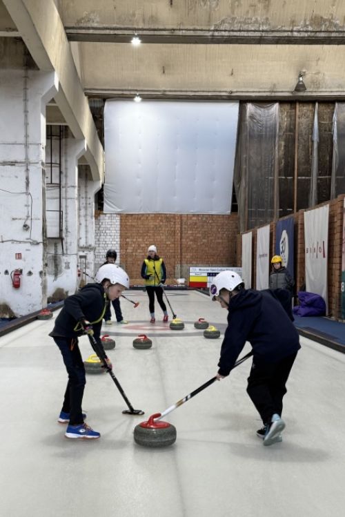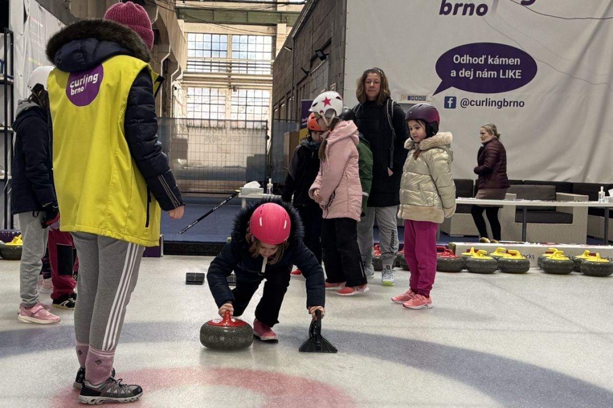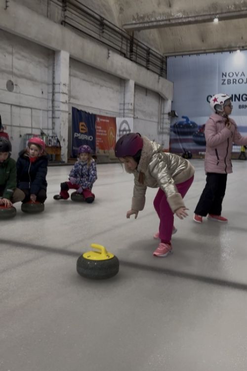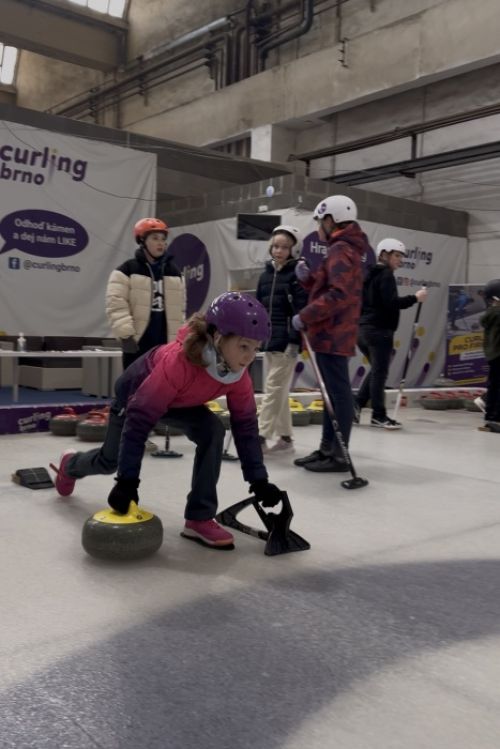 Školáci ze Sivic si vyzkoušeli pravidla a umění curlingu...